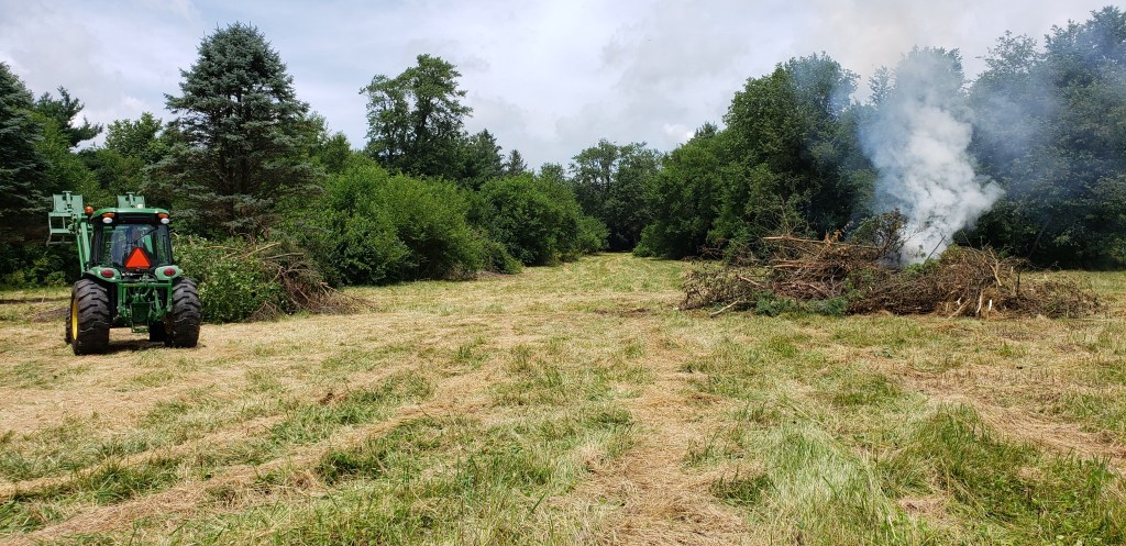 We had so much excitement and enthusiasm that summer. The property is long and rectangular. You 100% could not see into the property. It is hard to believe now. Our goal was to get in. With a tractor we already owned and a bush hog (a heavy duty chopper that pulls behind a tractor), we went in. Bush hog first. We didn’t officially own the property yet. We believed from the very beginning it was our destiny. We worked for over a month not owning it. Sunrise to sunset on weekends and every night after we got off work.