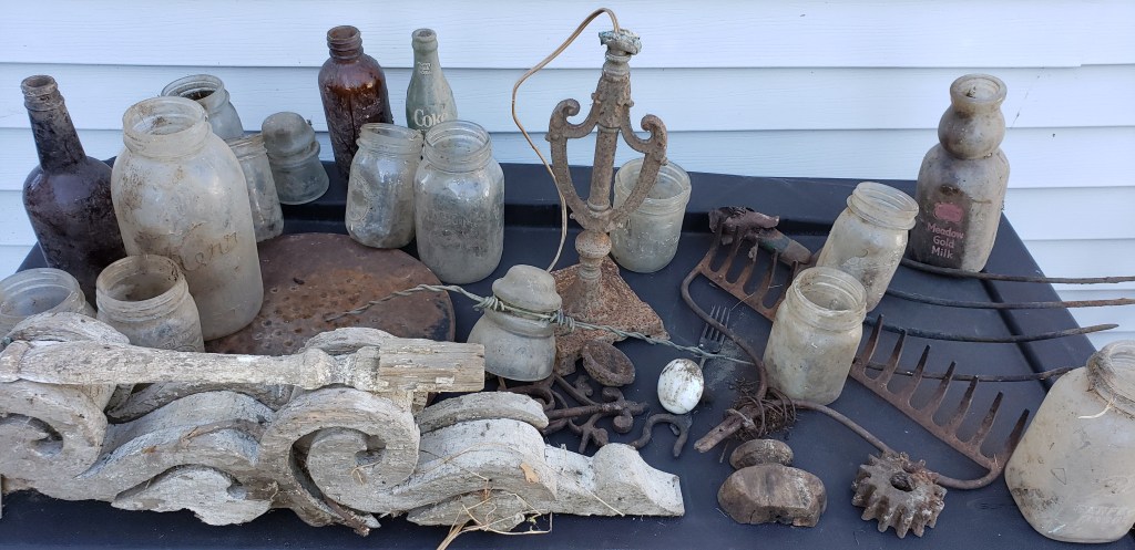 You can imagine that a property that had been left untouched for so long, would be full of treasures. Well, this property did not disappoint. We had mountains of rubble to go through. The two of us did it by hand. From jail cell doors, to bottles we had driven over with the tractor or backhoe dozens of times, we pretty much found it all. In all the digging, we never found human remains or money. The latter would have been appreciated.