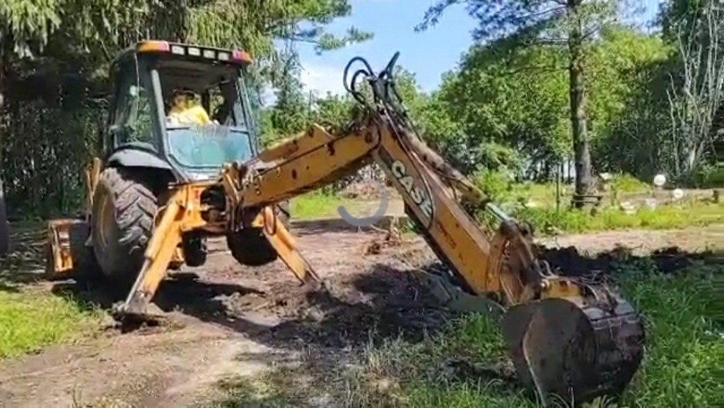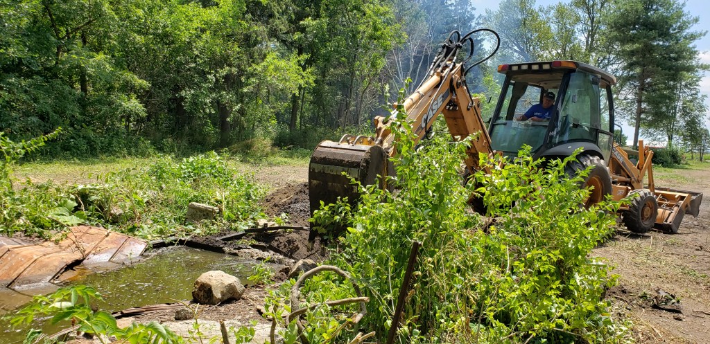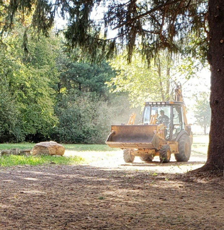 The saving grace to our ability to move forward in this project was our backhoe. We bought it used – still expensive, but we would have had to pay someone to remove all of the stumps. When I say all of the stumps, I mean hundreds and hundreds. At this point we hadn’t paid anyone for anything, and just the two of us had done the work. This is how we roll. So we bought it. I thought it was kind of silly, but I can honestly say that we would never have made it through the project without it. It did even more for us than we were expecting at the time. I love the picture with the sunlight beaming down. That was pretty much how it was. Without that backhoe – we would not have the Red Tail Ranch. Her are just a few pictures of her in action.