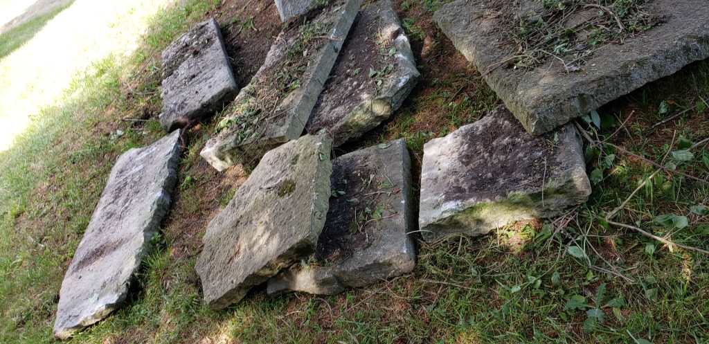 Rocks are always a topic of conversation to new visitors. These rocks were not here originally. The area is not that rocky. We found old ledge and diary entries that indicate one of the family members had a thing for rocks. We saw entries for visits to quarries and notes that he had asked someone to deliver boulders.