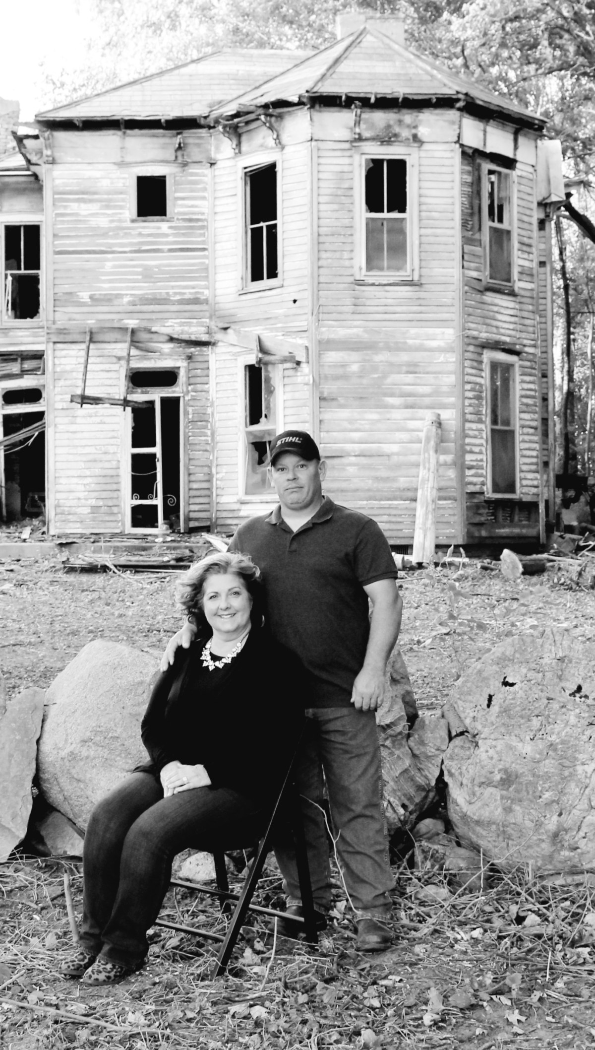 Before we tore down the house (make sure you have read that post first) I wanted to get a picture of us, decades later in about the same spot. Our friend Lynn Good took the picture of us. Both pictures are framed and on display in our house.