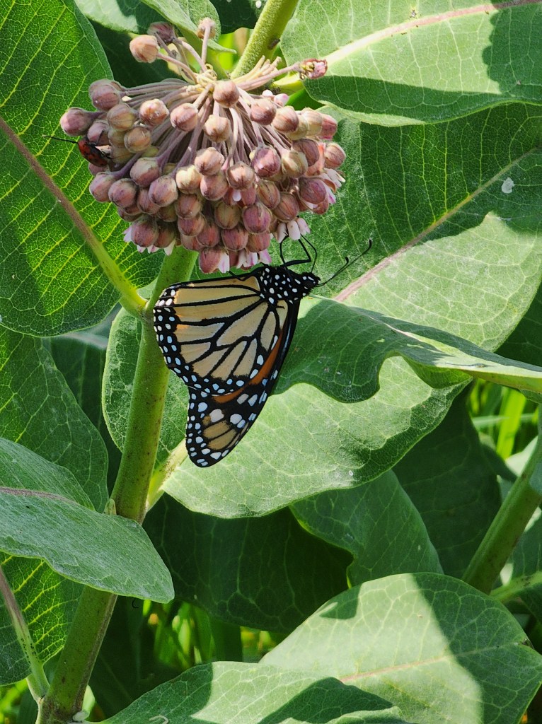 If you are not familiar with the midwest, it is hard to understand. What was once native land where native plants grew for miles and miles, is now corn and soybean fields for miles and miles. No fault to the farmers at all, I like to eat along with the millions of people that directly benefit from what is grown here. This however, directly links to the decline in the monarch butterfly. There are now slivers of land along roadways for native milkweed, the only plant that the monarch lays eggs on. Farmers mow ditches, sometimes for their fields, sometimes to keep their property looking good for their landlord, and sometimes for the safety of the roadways.