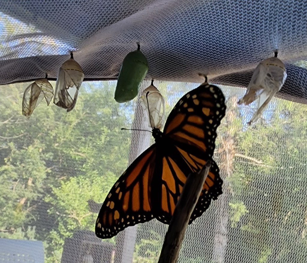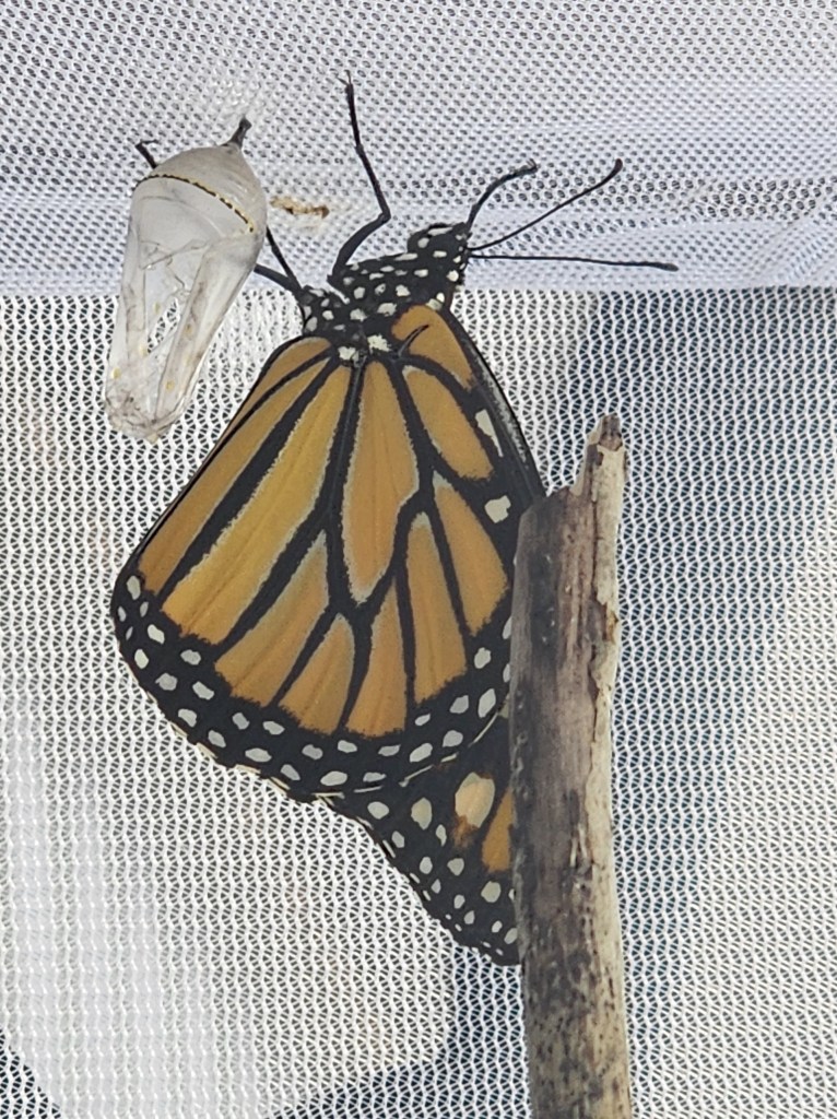 One day, watching a ditch getting mowed down, I thought maybe we should check the ditches close to us before they got mowed. Sure enough, their were tiny monarch caterpillars about to meet their maker. This is how we started raising monarch caterpillars. I ordered an enclosure from Amazon to come the next day. I started reading and watching videos to gain as much knowledge as I could. The next day, Mike and I went on our first rescue mission.