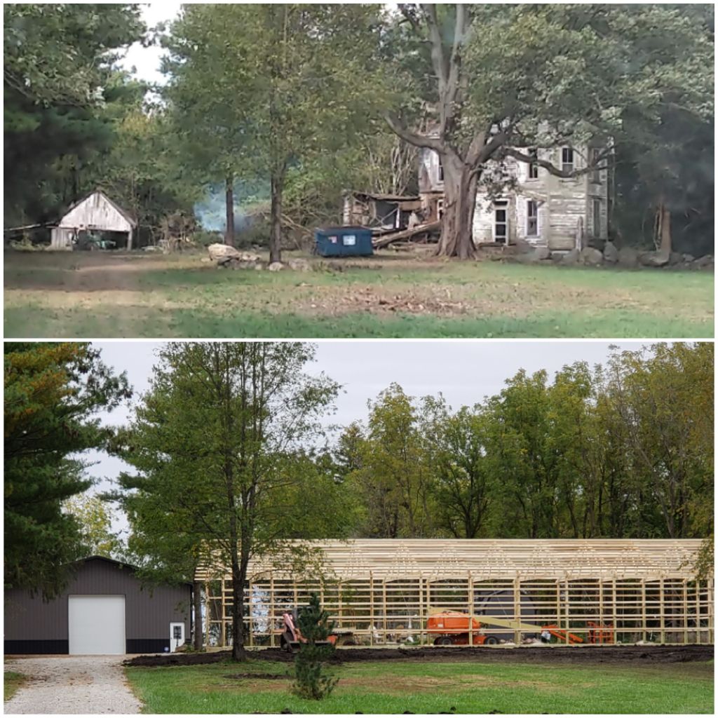 Not only did we tear down the huge house (see The House) we also had a few other structures to tear down. If they were solid and good we wouldn’t have, but the were well past their prime. Just the two of us, tore down every single structure on the property. We sorted good wood out and recycled all of the metal. We only hauled off one dumpster.