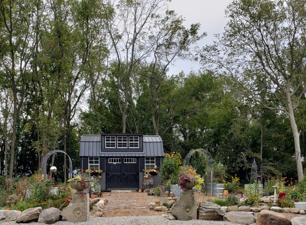 Before we had a house, we had a Potting Shed. Mike designed it for me and surprised me with it. Now truth be told, it was all a ploy to keep my stuff out of the way of equipment! But, I love it none the less. We bought it from a local builder. Where the enormous house once stood, is our beautiful garden today. At the back of the garden is our Potting Shed. It took a huge amount of dirt work to get it where it is today. We had top soil from the farm pond dig was perfect.