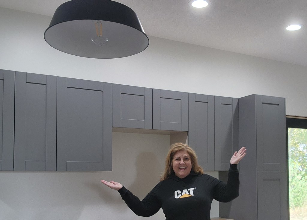 We paid for really good windows, that our little dogs could see out of. We paid for good insulation, sold exterior doors, solid wood interior and trim, and good flooring. We used every rebate and were good at taking back what we didn’t need. I cleaned up and organized after the crew every day. Mike did all the electric, and I was the lovely assistant. I put most of the kitchen cabinets together, and Mike was my lovely assistant. Mike hung doors, closets, just about everything. We were our own general contractor. That meant we were either working at the house or going to get supplies.