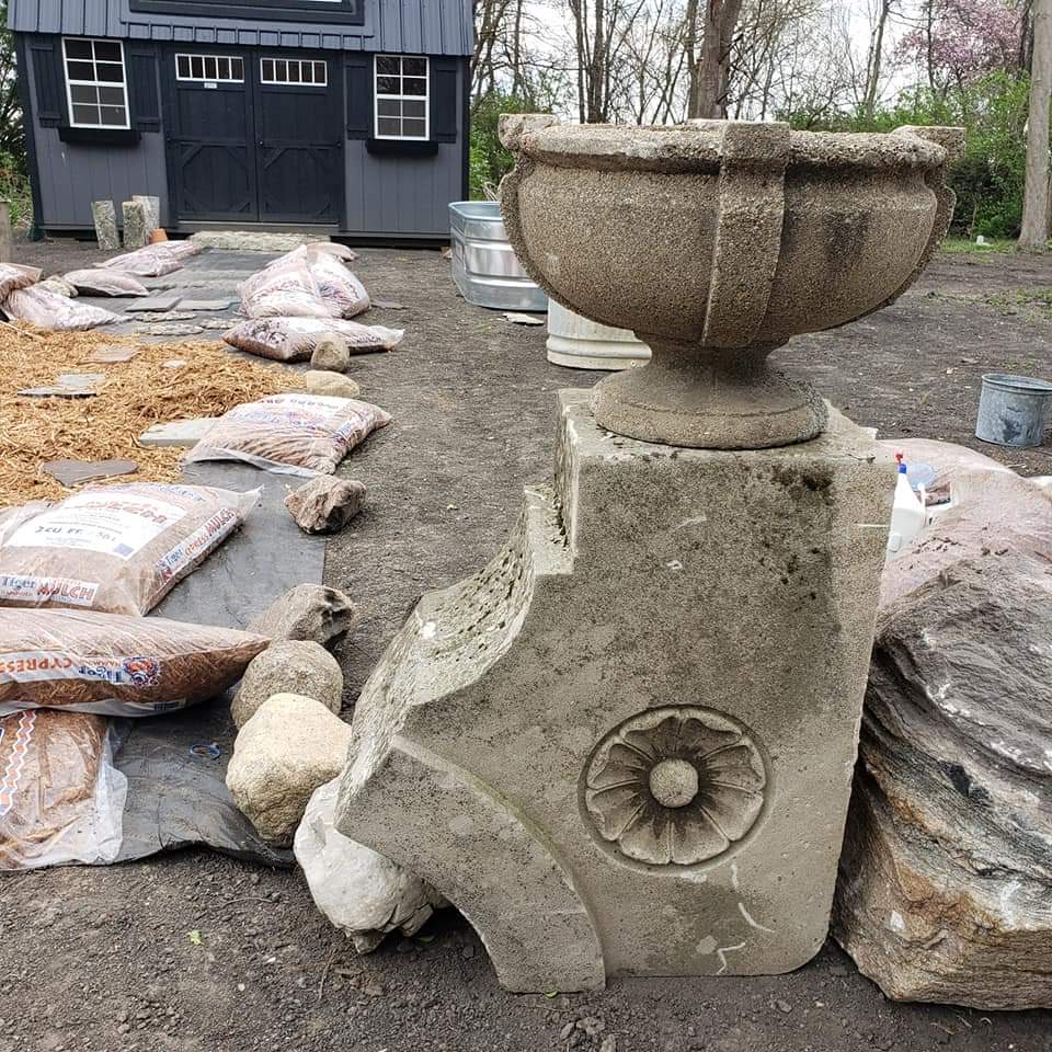 We were able to save one part of the old house. In the seventies the concrete porch was added to the house. I wanted to save it and use it in the garden. For the longest time it was where we sat to cool off and rest. The garden was designed around it. It sits behind our house now in the back. The soil was rough. It took hours and hours to sort through the crud for clean soil.